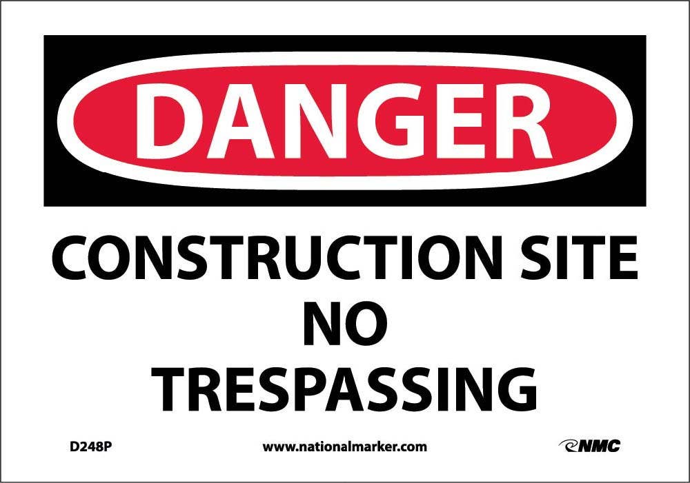 AccuformNMC D248 Danger, Construction Site No Trespassing Sign, 14" H x 20" W