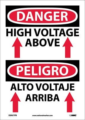 Details: AccuformNMC SBMELC011 Bilingual OSHA Danger Safety Sign: High Voltage Above, 14" x 10"