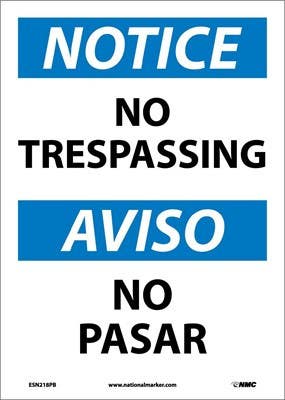 Details: AccuformNMC SBMATR Bilingual OSHA Notice Safety Sign, No Trespassing