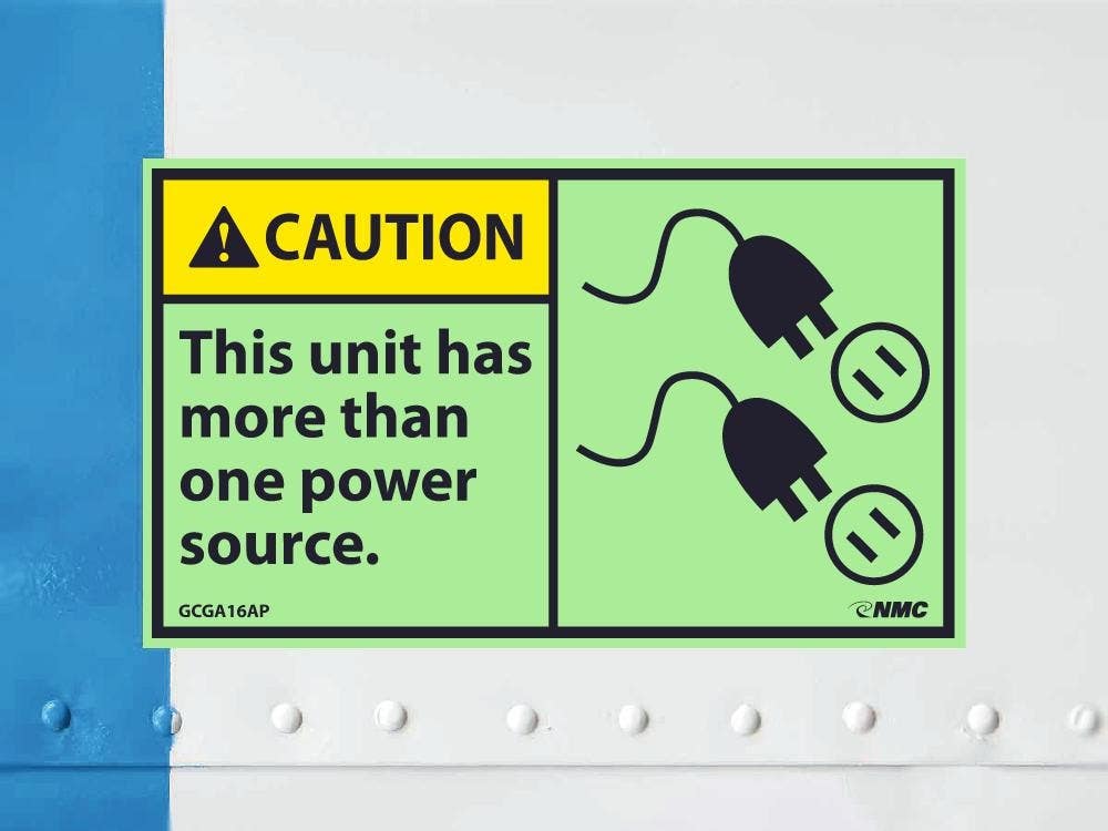 Details: AccuformNMC GCGA16AP Caution, This Unit Has More Than One Power Source Label, 3" x 5", PS Vinylglow, 5/Pk