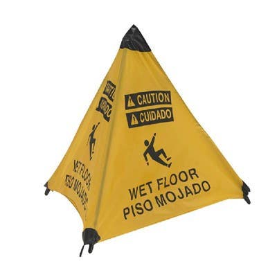 Details: AccuformNMC PFT Bilingual OSHA Caution Handy Cone Floor Signs, Wet Floor, Black/Yellow