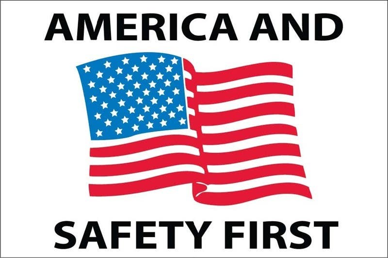 AccuformNMC HH90 America & Safety First Hard Hat Emblem, White, 2" x 3", Adhesive Backed Vinyl, 25/Pk