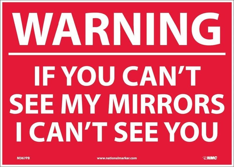 Details: AccuformNMC LVHR568 Warning Safety Label, If You Can't See My Mirrors I Can't See You, 10" x 14"