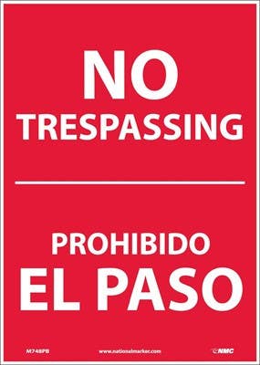 Avoid the trouble that trespassers stir up by firmly prohibiting them from your property. Use this vibrant red no trespassing sign to intimidate potential intruders. This bilingual sign will communicate your message to a broad range of people.