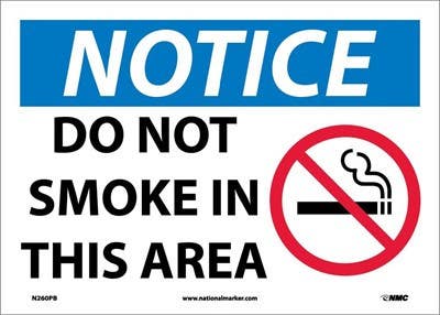 Details: AccuformNMC N260 Notice, Do Not Smoke In This Area Sign (Graphic), 10" x 14"