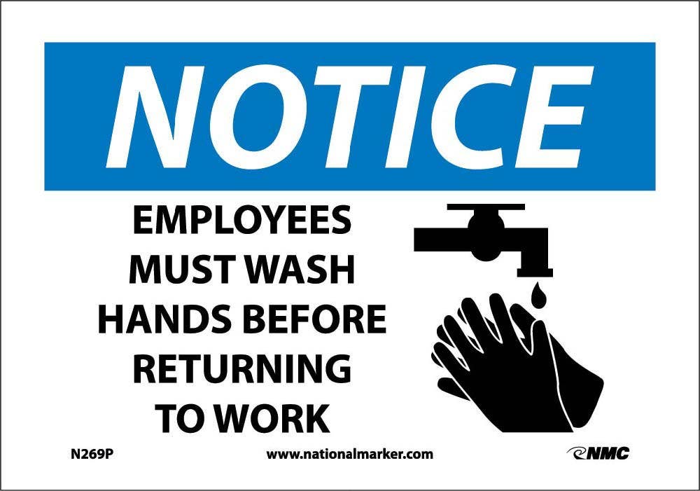 Details: AccuformNMC N269AB Notice. Employees Must Wash Hands...Sign (Graphic), Standard Aluminum, 10" H x 14" W