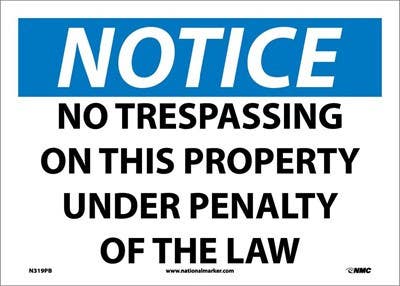 Details: AccuformNMC MATR803 OSHA Notice Safety Sign, No Trespassing On This Property..., 10" x 14"
