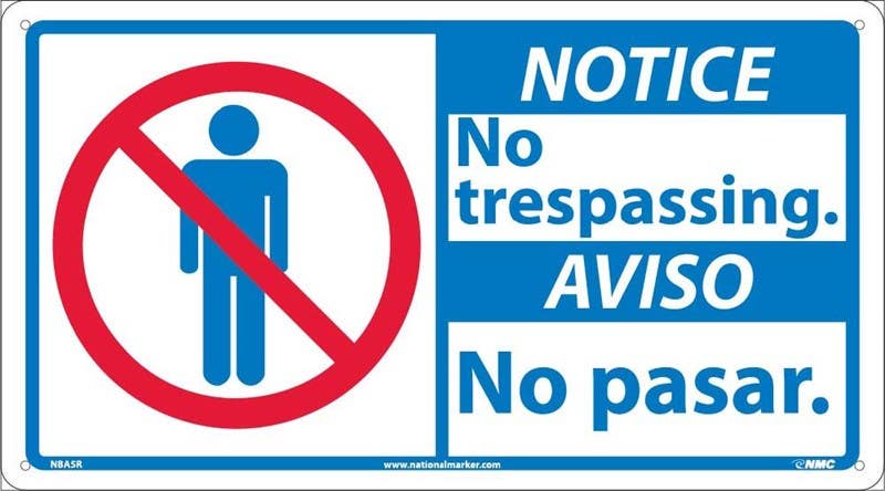 Details: AccuformNMC NBA5 Notice, No Trespassing Sign (Graphic), Bilingual, 10" x 18"