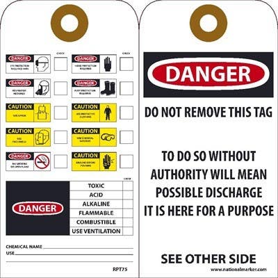 Details: AccuformNMC RPT75 Danger PPE Required Here Tag, 6" x 3", Unrippable Vinyl, 25/Pk