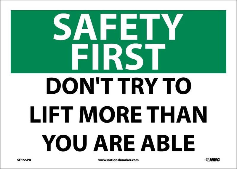 Details: AccuformNMC MGNF901 OSHA Safety First Sign, Don't Try To Lift More Than You Are Able, 10" x 14"