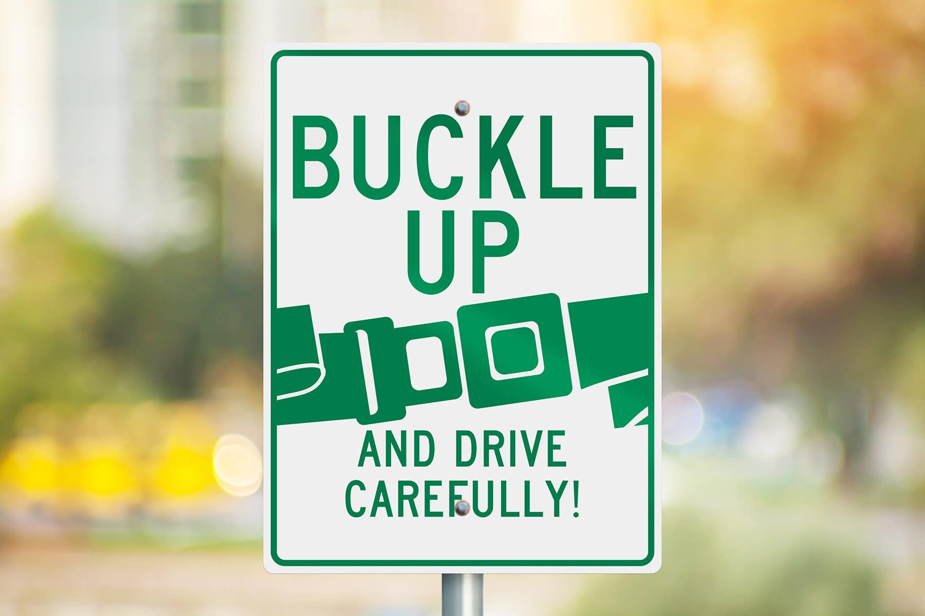 Give drivers and passengers a friendly reminder to buckle their seatbelts. Save lives by posting this sign, which uses visible green letters and a seatbelt graphic to highlight your point.