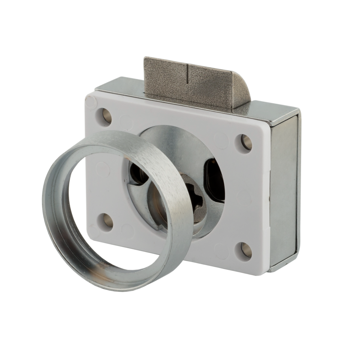 • Works for both cabinet doors or drawers. Mount lock on side for door applications.