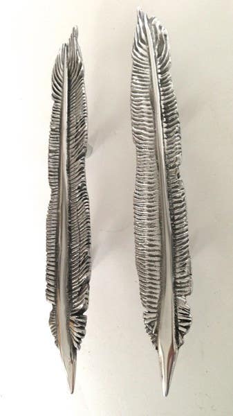 Long elegant handle designed for cabinets, but also fine for doors, light but not as tickley as it looks. available in brass, bronze and aluminium (as shown) 285mm long