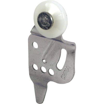 This is a side mount, top hung adjustable roller bracket with a 3/4 in. convex nylon roller and 1/2 in. offset that fits onto the back wardrobe door panel. It fits 3/4 in. to 1-3/8 in. thick doors. For front panel or 1/4 in. offset, see Prime-Line part N 6524. Fits Harvey closet doors.