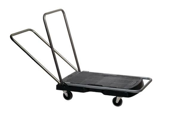• The Rubbermaid Commercial Triple Trolley efficiently transports large bulky loads and then folds flat for easy storage.