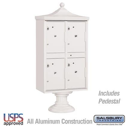 Private Access Regency Decorative Outdoor Parcel Lockers manufactured by Salsbury Industries offer a secure means of receiving packages'They are designed with elegance and security in mind' The 3300 Regency Series includes an outdoor, four-door parcel locker that includes a matching pedestal and a decorative top and decorative pedestal cover' Our Regency Outdoor Parcel Lockers are an excellent choice for durability because they are constructed of heavy-duty aluminum and stainless steel' See the additional features of our Regency Decorative Outdoor Parcel Lockers below'
