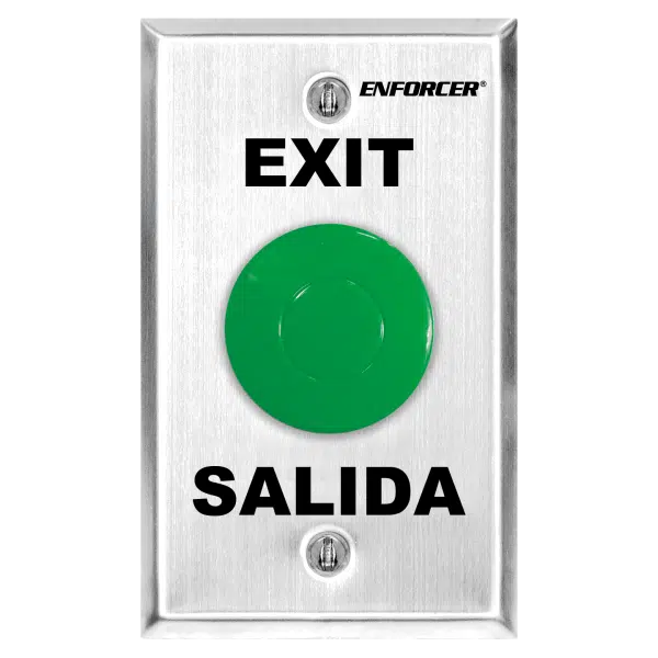 SECO-LARM SD-7201GFPE1Q Request-to-Exit Plate with green mushroom cap push button, “Exit” and “Salida,” DPDT