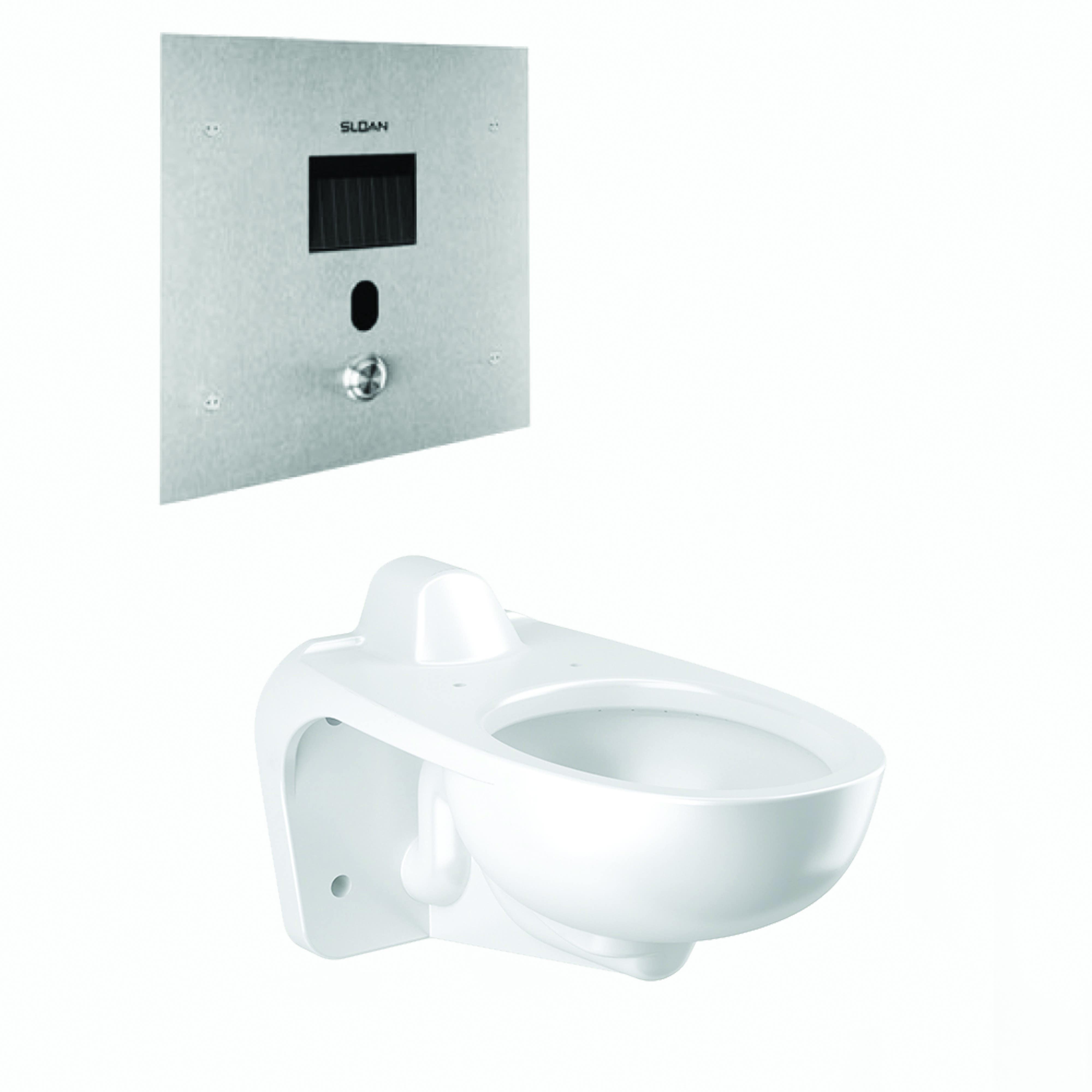 Details: Sloan WETS-2460.1200 ST-2469 Wall Hung Elongated Toilet Fixture w/ Solis 8152-1.28 Flushometer