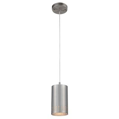 • Cylindrical brushed nickel shade with perforated pattern