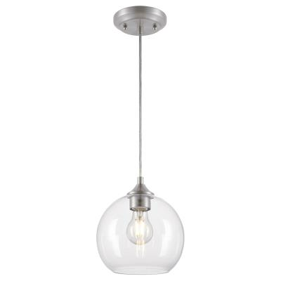 The Tatze mini pendant in a brushed nickel finish with hand-blown clear glass adds beautiful illumination to modern-day home interiors. A classic sculpted globe with a crisp, metal finish is a brilliant combination and a charming enhancement for any bedroom, kitchen, hallway, or living room.
