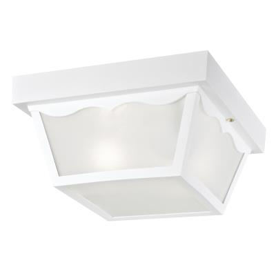 Provide welcoming light outside your home when you illuminate a front or back entryway with this two-light flush-mount fixture. The white finish and frosted glass panels blend well with any setting.